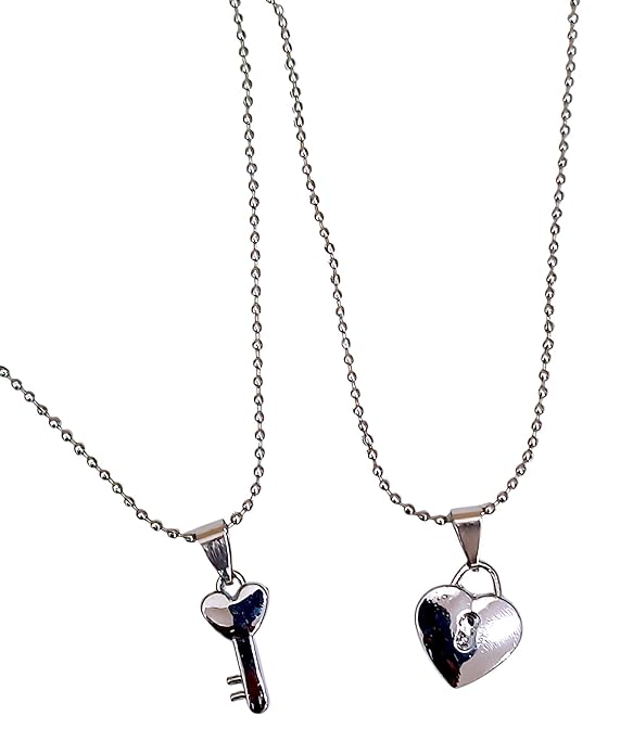 Heart Lock and Key Couple Pendant Necklace with 2 Chain Jewellery | Gift for Valentine