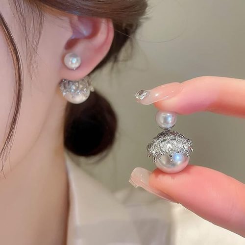 Wiwpar Silver Post Double Sided Pearl Rhinestone Ear Stud Earrings Crystal Twisted Stud Earrings Double Sided Ball Earrings for Women Fashion Earrings Gifts, Silver Pearl cheap oxidised earrings