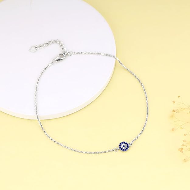 This particular sterling silver evil eye anklet is designed for women and girls who want to combine style with meaning. Its delicate craftsmanship, beautiful blue evil eye charm, and polished silver chain make it an accessory that is perfect for everyday wear as well as special occasions.